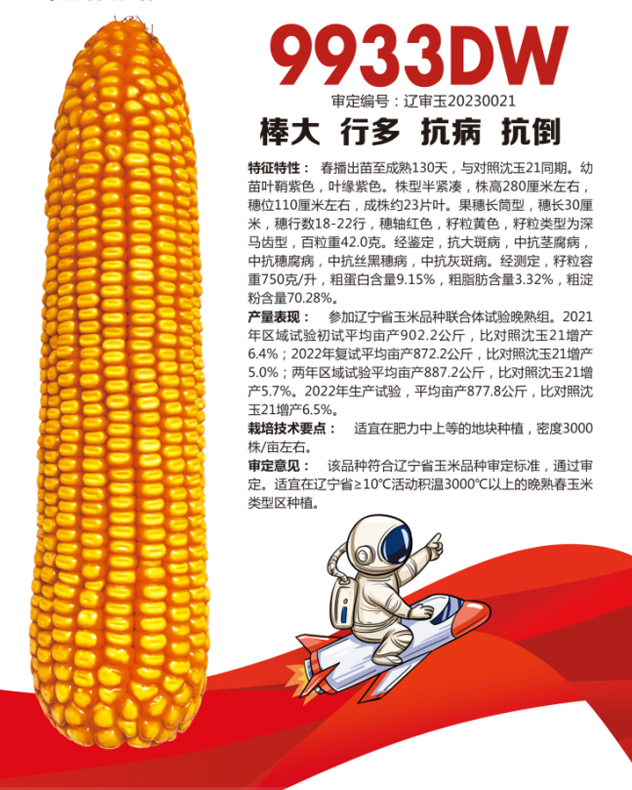 参加辽宁省玉米品种联合体试验晚熟组。2021年区域试验初试平均亩产902.2公斤,比对照沈玉21增产6.4%; 2022年复试平均亩产872.2公斤,比对照沈玉21增产5.0%;两年区域试验平均亩产887.2公斤,比对照沈玉21增产5.7%。2022年生产试验,平均亩产877.8公斤,比对照沈玉21增产6.5%。